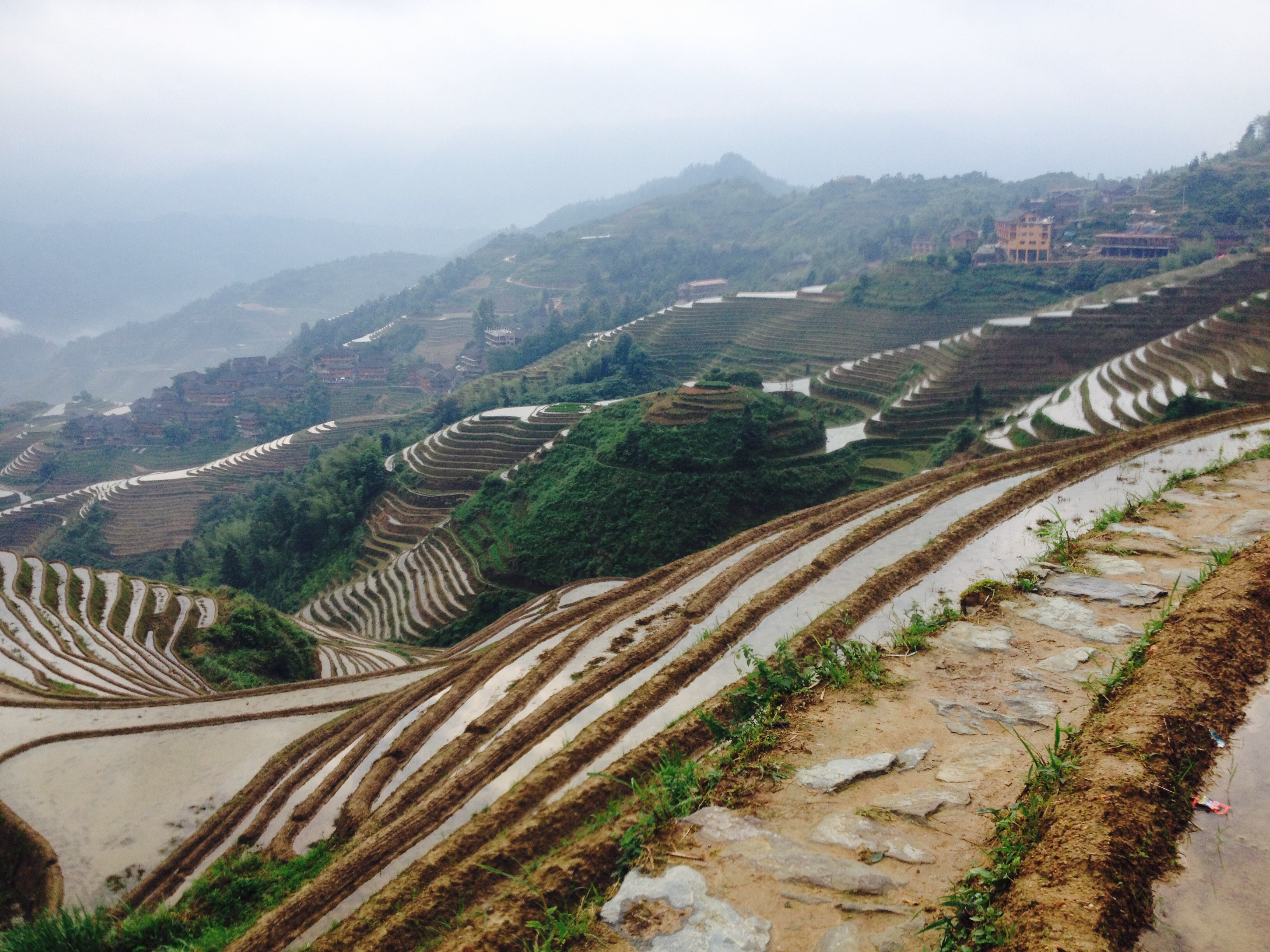 First of all, you should know that the mini bus leaving from Gui Lin leaves at approximately 8 am. It is about a three to four-hour trip to the rice terraces. That will put you at an 1130 am- 1200 pm arrival time at your destination. I would recommend going to Da Zhai first. Now that doesn’t include the time that you will spend after you’ve been dropped off by the mini-bus looking for you lodging (remember maps and technology don’t work so well there in the mountains and the walking paths disappear sporadically. Optimistically, that will take you about 30 minutes, if you get lost or have trouble finding your lodging it may take you an hour. In short, you might not even be ready to explore the rice terraces until 1230 pm or 1 pm. The sun goes down a bit earlier when you’re in the mountains so you may only have about 4-5 hours to explore the rice terraces on the first day.