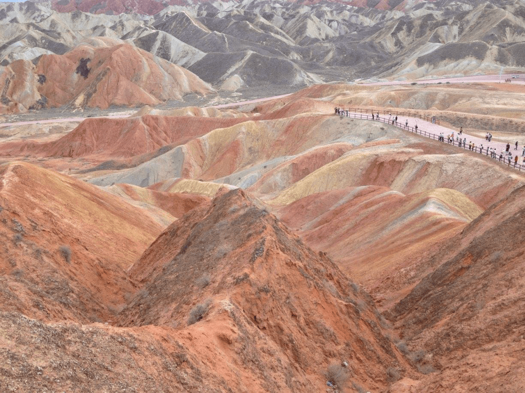 It is important to all who go to the rainbow mountains that they know not to try to walk from one viewing platform to another. In the Rainbow Mountains of Zhang Ye there are some viewing platforms that can be walked from one to the other. However there are some that are a significant distance apart. Walking to a viewing platform that is far away will only succeed in wasting time and energy. It is best to take the bus from one viewing platform to another.