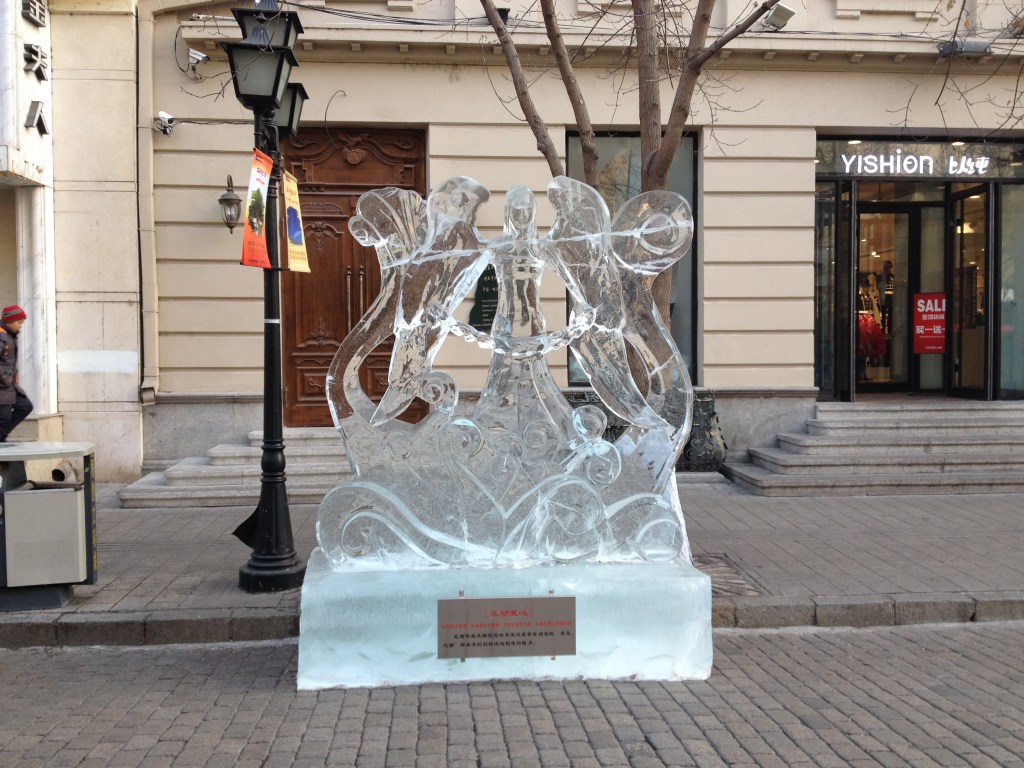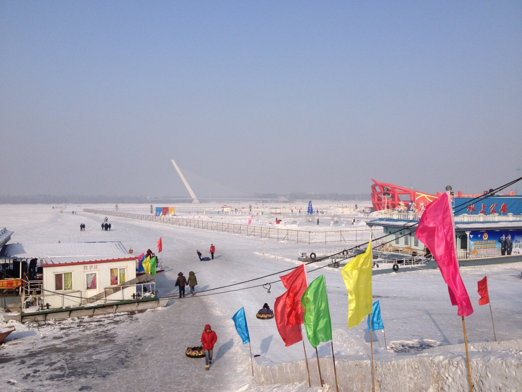 There is no way that anyone should miss going to the Song Hua River. This is a very wide river that lies at the end of Zhong Yang Street. Normally, this river serves as a short of divider between the two parts of the city. However, during the winter months this river is so far frozen over that not only could you walk across it, you could even drive a car across it. There are all types of activities to do at the Song Hua River. Such activities include tire sledding, (regular) sledding, ice skating, driving an around a car track (made of snow) in an actual car, taking a dog sled ride or cross the river on foot to reach the other side of the city. It is like a carnival has been set up on the frozen over river and anyone can go either in the daytime or at nighttime. I think it closes at 10 if I’m not mistaken.