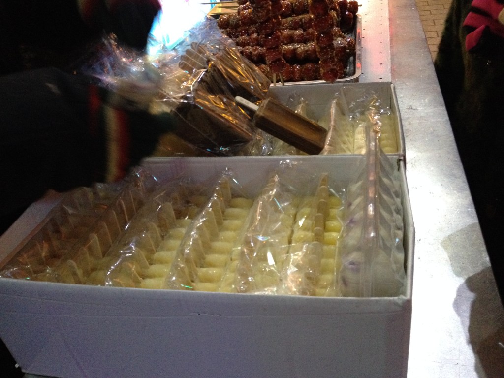 There is something interesting that you will see on Zhong Yang Street that you may not see in many other places, which is ice cream being sold. You may be thinking “what’s so special about that?”, well it isn’t being refrigerated or kept in a cooler. Due to the frigid temperatures vendors can sell ice cream straight out of a cardboard box. I would recommend getting some, its a different experience and something that not everyone can say they’ve done before. Also, the ice cream will probably be the warmest thing outside, some people say it actually warms you up a bit. I’m not sure if I believe that but whatever.