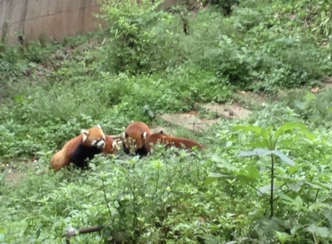 Some of the Red Pandas during feeding time.
