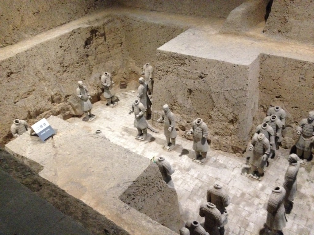 Honestly though, I was a little let down by the Terracotta Warriors Exhibit. I thought it would be different. It was very commercialized in the exhibit, with about as much people as a Beijing Subway train during rush hour. The Terracotta Warriors have had a big warehouse built around the spot where they were found. The sculptures of the soldiers were impressive considering when they were made, however, they didn’t seem all that much different from the replicas placed outside of some restaurants in Xi’an(and all over China for that matter). I know the significance of these statues are monumental but at face value they seem a bit underwhelming.
